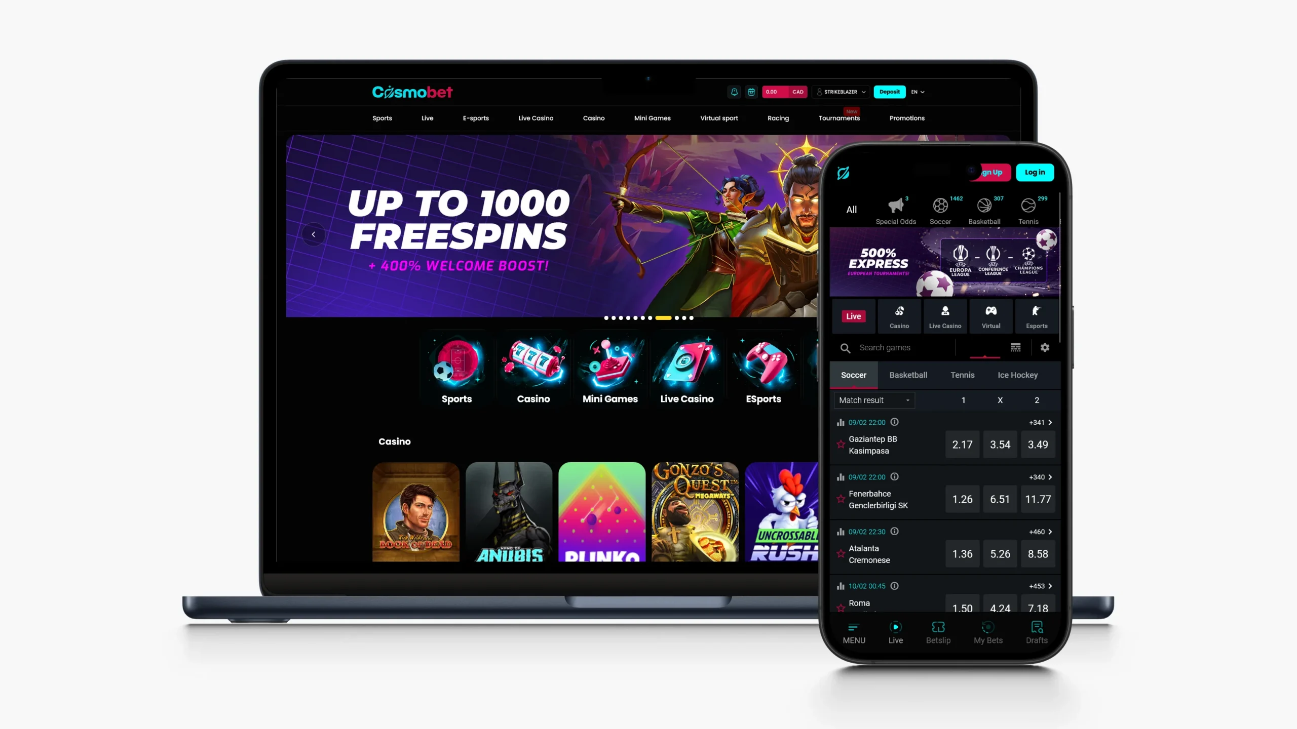 Cosmobet’s modern, minimal design makes the platform convenient and easy to use.