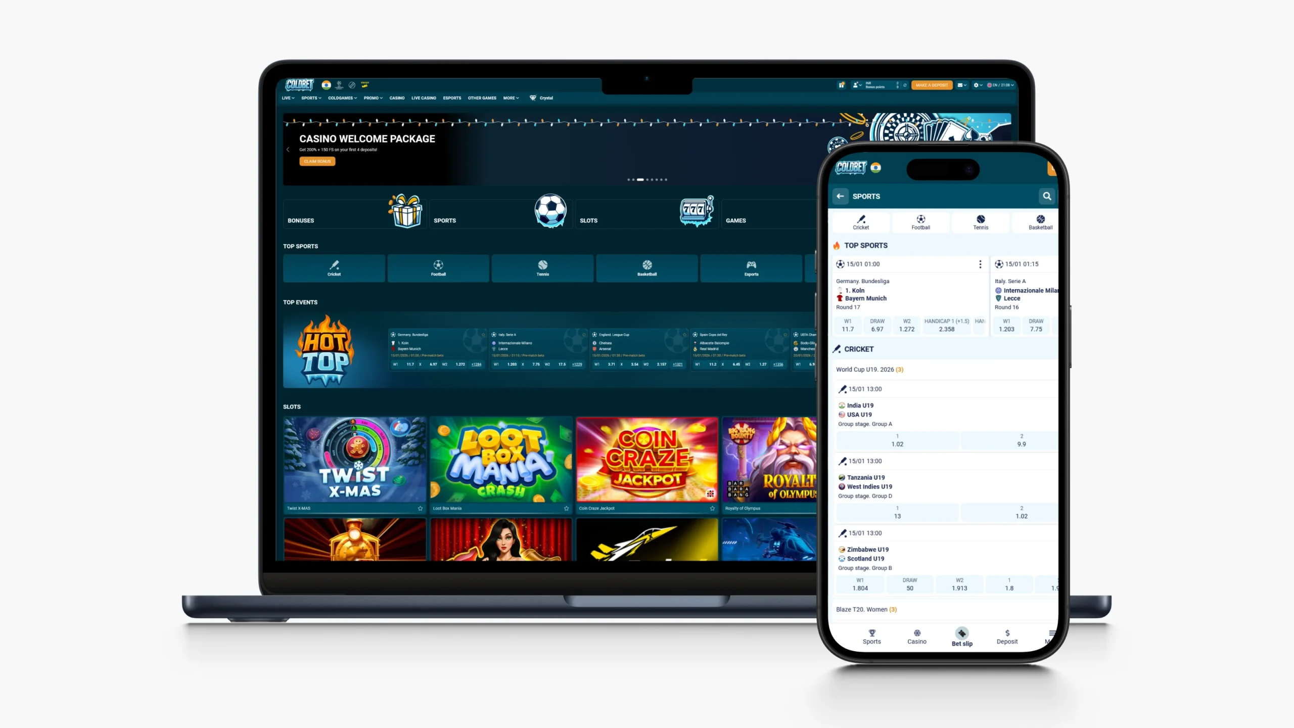 Coldbet Casino offers casino games such as slots, crash games, live casino lobbies, card games, jackpots, etc. You will also find a sportsbook here with reliable odds and markets across major sporting tournaments and events from all over the world.