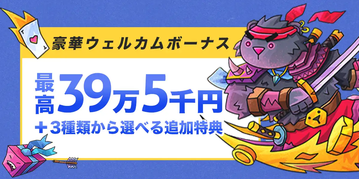 ※初回入金ボーナスは、入金額に応じて3種類から自動的にボーナスが選択されます。還元率および賭け条件も異なるため、入金する前に受け取りたいボーナスの最小入金額にご注意ください。