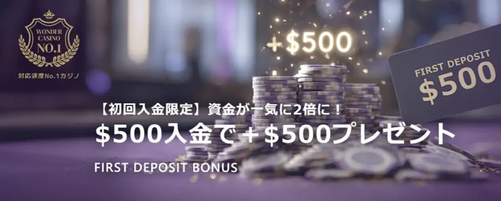- 当サイトのリンクからワンダーカジノ公式サイトへ