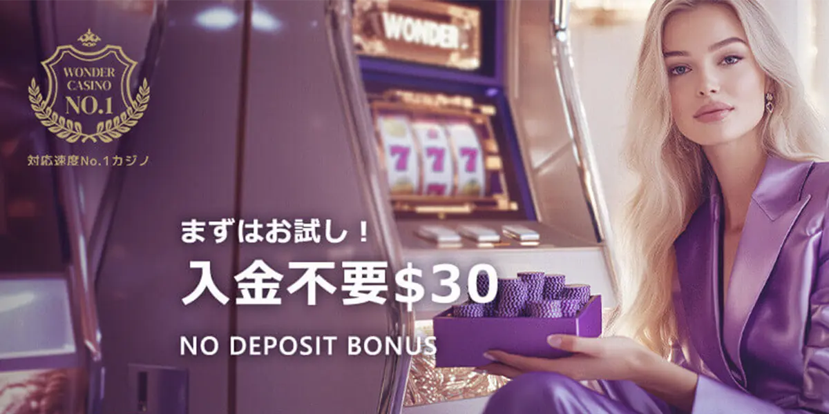 ワンダーカジノでは新規登録をすると30ドルの入金不要ボーナスがもらえます。