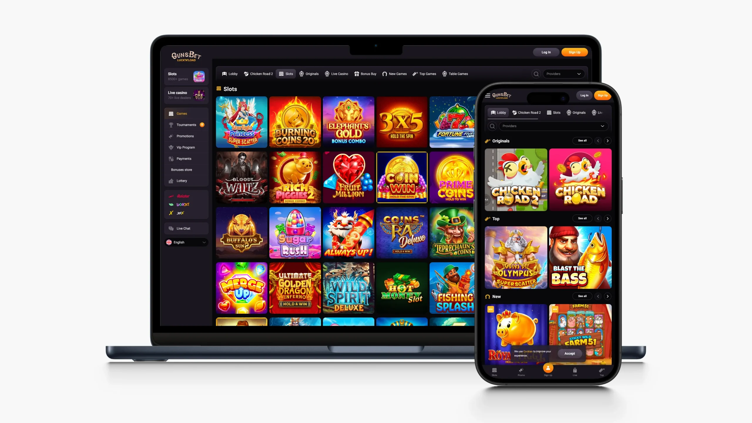 While GunsBet does not offer dedicated iOS or Android apps, the mobile browser version is fully optimised for smartphones and tablets.